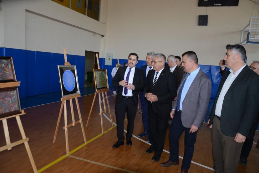 Eserlerin Halk Eğitim Merkezi usta öğreticileri önderliğinde kursiyerlerle birlikte hazırlandığını belirten Türkmen, "Kursa başvuran kursiyerlerimiz yaklaşık 2 aydır bu çalışmayı yaptı ve ortaya güzel eserler çıkardılar. Kurslarımız dönemsel olarak başlayıp, dönemsel olarak bitiyor. Aynı şekilde devam edecek. Usta öğretici ve kursiyerlerimize teşekkür ediyorum" diye konuştu.