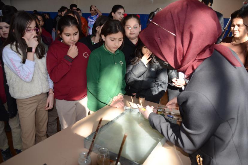 Halk Eğitim Merkezi Müdürü İbrahim Türkmen, "Peygamber Efendimizin (S.A.V) 1500'üncü yılı mevlidi nebi etkinlikleri çerçevesinde ebru sanatı, hat sanatı ve naht sanatı sergimizi düzenledik. Burada 33 eser yer almakta. Tabii ki bu eserlerin tamamı değil içinden seçilenler bunlar. Bunları öğrencilerimize, halkımıza tanıtarak, ebru, hat ve naht sanatlarının önemini vurgulamak istedik. Hem ramazan ayı içerisinde olmamız sebebiyle hem de bu sanatı bütünleştirmek adına ramazan ayı içerisinde bu şekilde bir etkinlik düzenledik. İnşallah öğrencilerimiz ve halkımız bundan faydalanır" dedi.