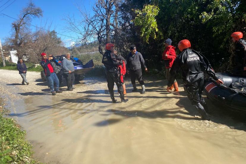 MUĞLA'nın Seydikemer ilçesinde dünden beri etkili olan sağanak nedeniyle Eşen Çayı’nın taşması sonucu su altında kalan serada mahsur kalıp çatısına çıkan 2 kişi, Sahil Güvenlik Komutanlığı ekiplerince botla kurtarıldı. Öte yandan taşkın nedeniyle yaklaşık 30 evi su bastı.