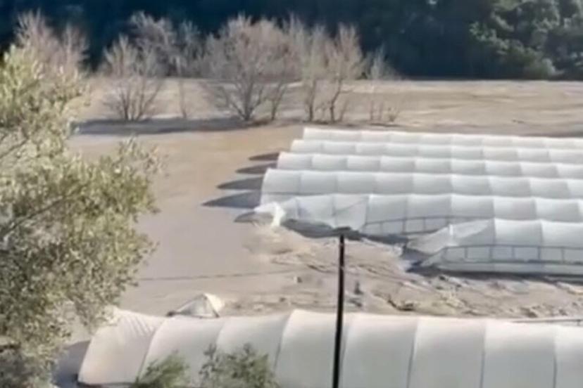 MUĞLA'nın Seydikemer ilçesinde dünden beri etkili olan sağanak nedeniyle Eşen Çayı’nın taşması sonucu su altında kalan serada...