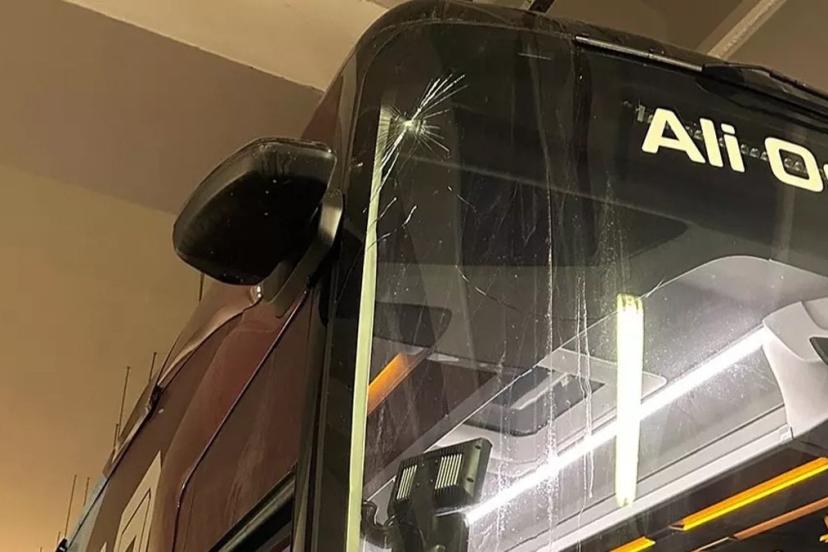 Bordo-mavili kafile, stadyuma hareket ettiği sırada kimliği belirsiz kişi ya da kişiler tarafından hedef alındı.
